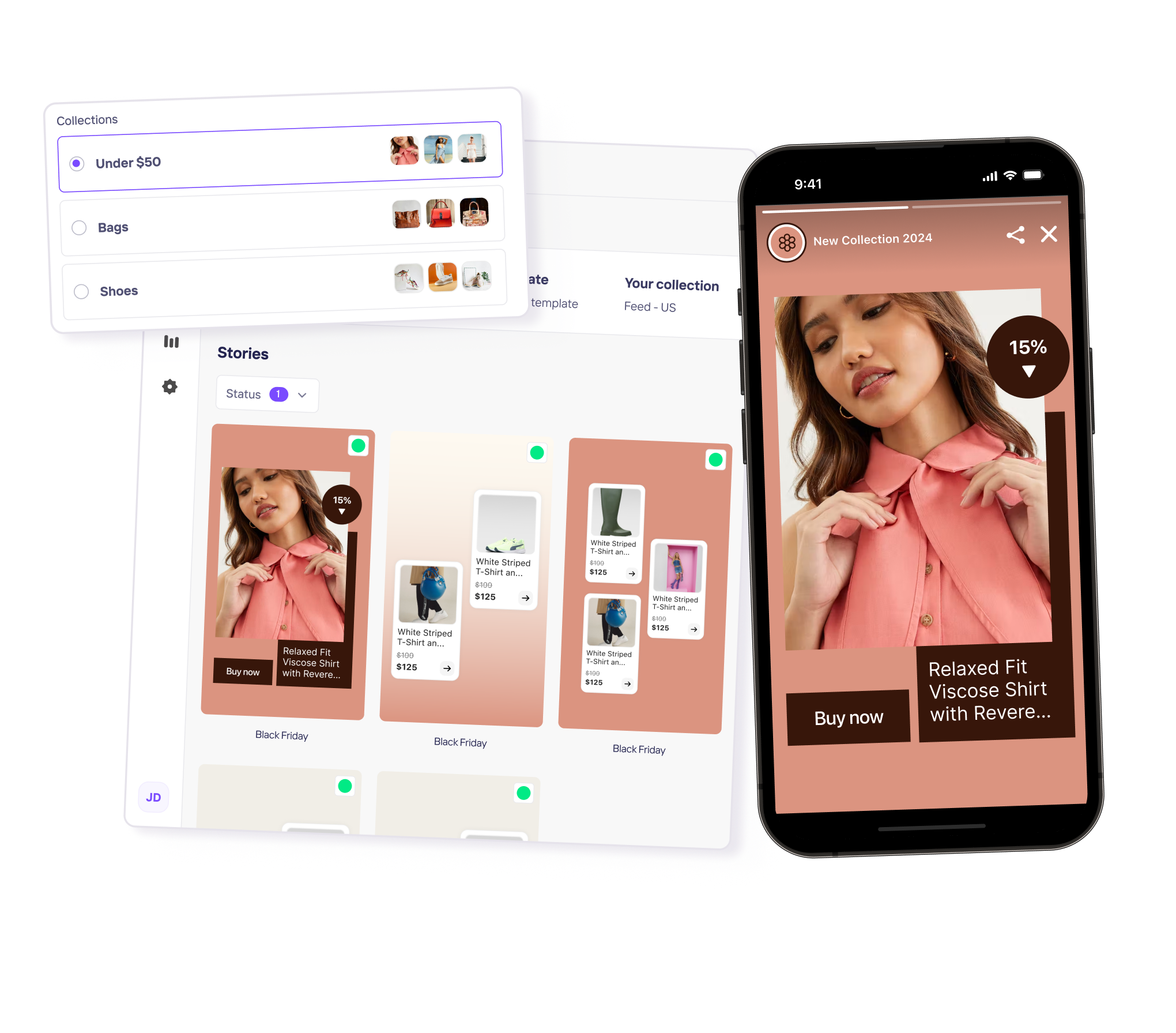 Boost your conversion rates with shoppable Stories, allowing users to shop your products without leaving the Stories.